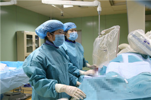 心内科主任吴伊风和副主任徐伟丽进行介入手术